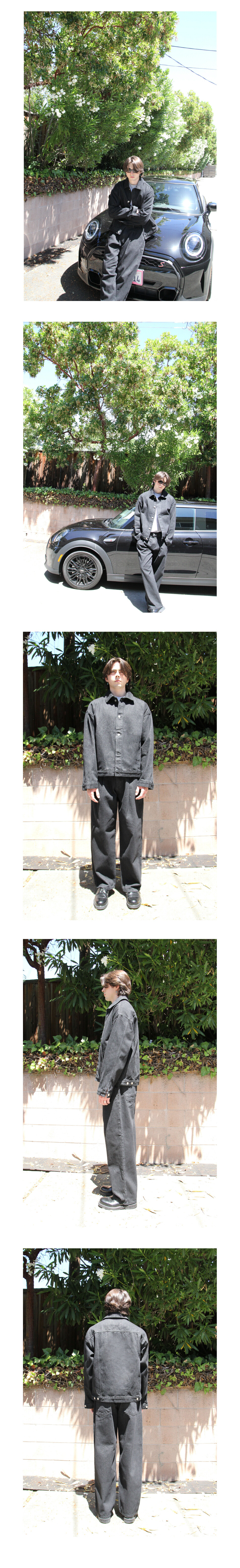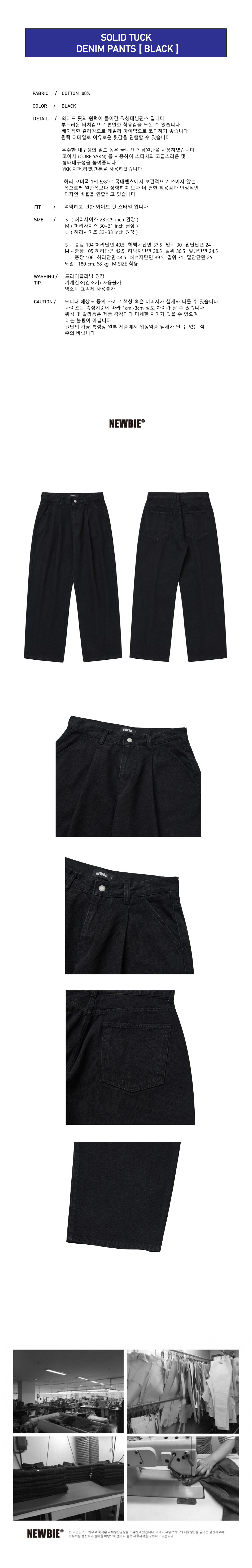 Solid tuck denim pants / black