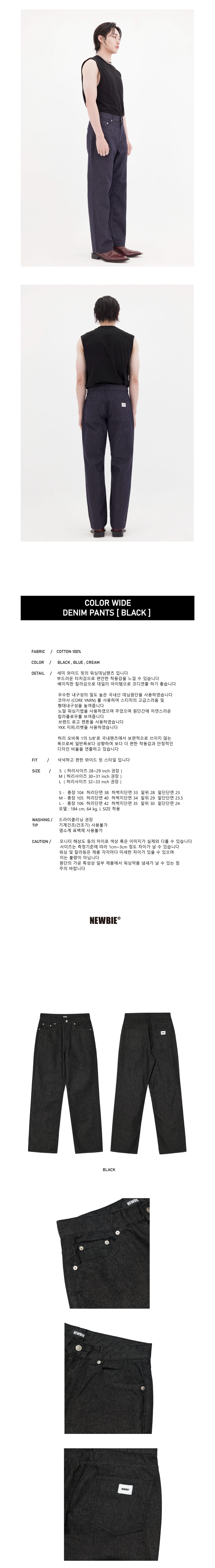 Color wide denim pants / black