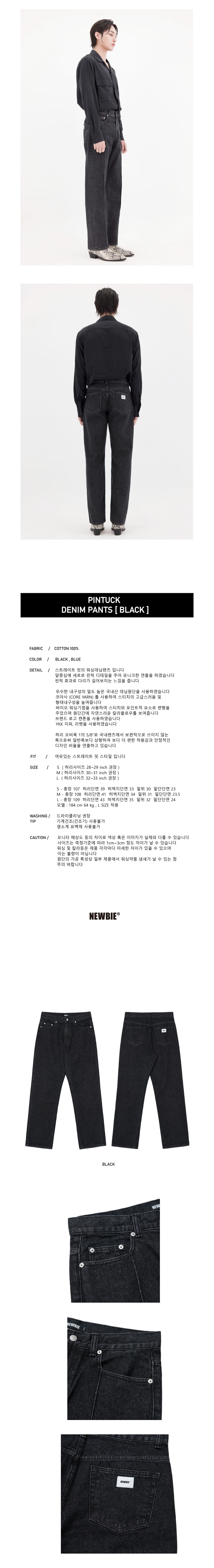 Pintuck denim pants / black